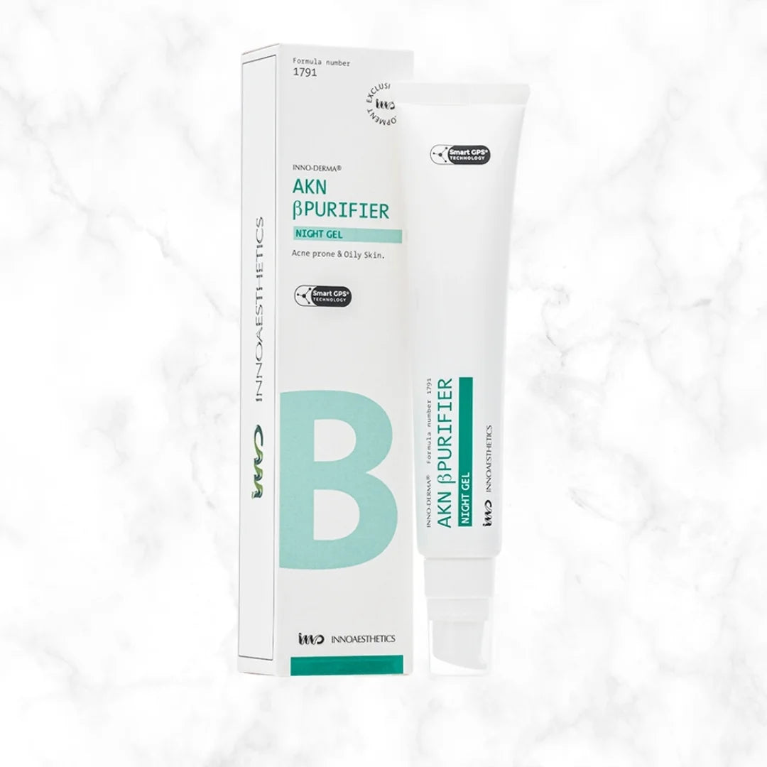 AKN β Purifier Night Gel works by regulating sebum production, preventing breakouts, reducing pore size and restoring the skin's biological balance. In addition, it promotes deep skin regeneration, has moisturizing and soothing properties, and can also be used for stretch marks.